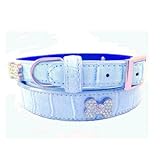 140 Rhinestones Jeweled Crocodile Pattern 100% Leather Dog Collar - Baby Blue/S (11"~15"L x 5/8"W) Order Now