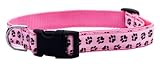 Discount Large Pink/Brown Puppy Paws Dog Collar: 1" wide, Adjusts 18-28".