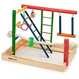 It's also very easy to put together. It comes with glue to make sure the wooden parts stay together. It's mainly putting wooden dowels though holes or slits on others to fit over the sides. I put it together in less than 10 minutes.Get more detail about Penn Plax Bird Activity Center - Large.