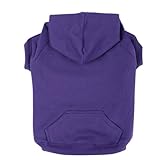 This sweatshirt is so soft & cuddly! It fits my 15 pound pug very snugly, I probably should have gotten a larger size (I got a small) but it might have been too loose & baggy. If you have an average sized pug (16-25 pounds), I would definitely get a medium. The color is beautiful and so far the material has held up well.Get more detail about SMALL - PURPLE - Soft, Colorful Dog Sweatshirt.
